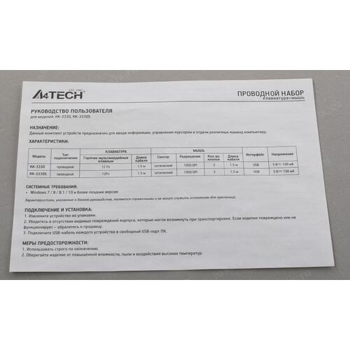 Клавиатура + мышь A4Tech KK-3330S клав:черный мышь:черный USB (KK-3330S USB (BLACK))