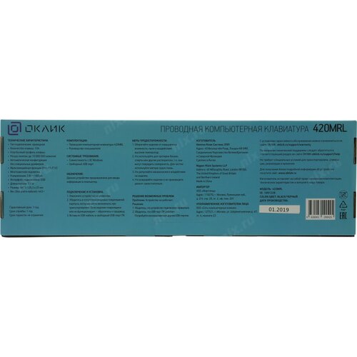 Клавиатура Оклик 420MRL черный USB slim Multimedia LED OKLICK 1091226