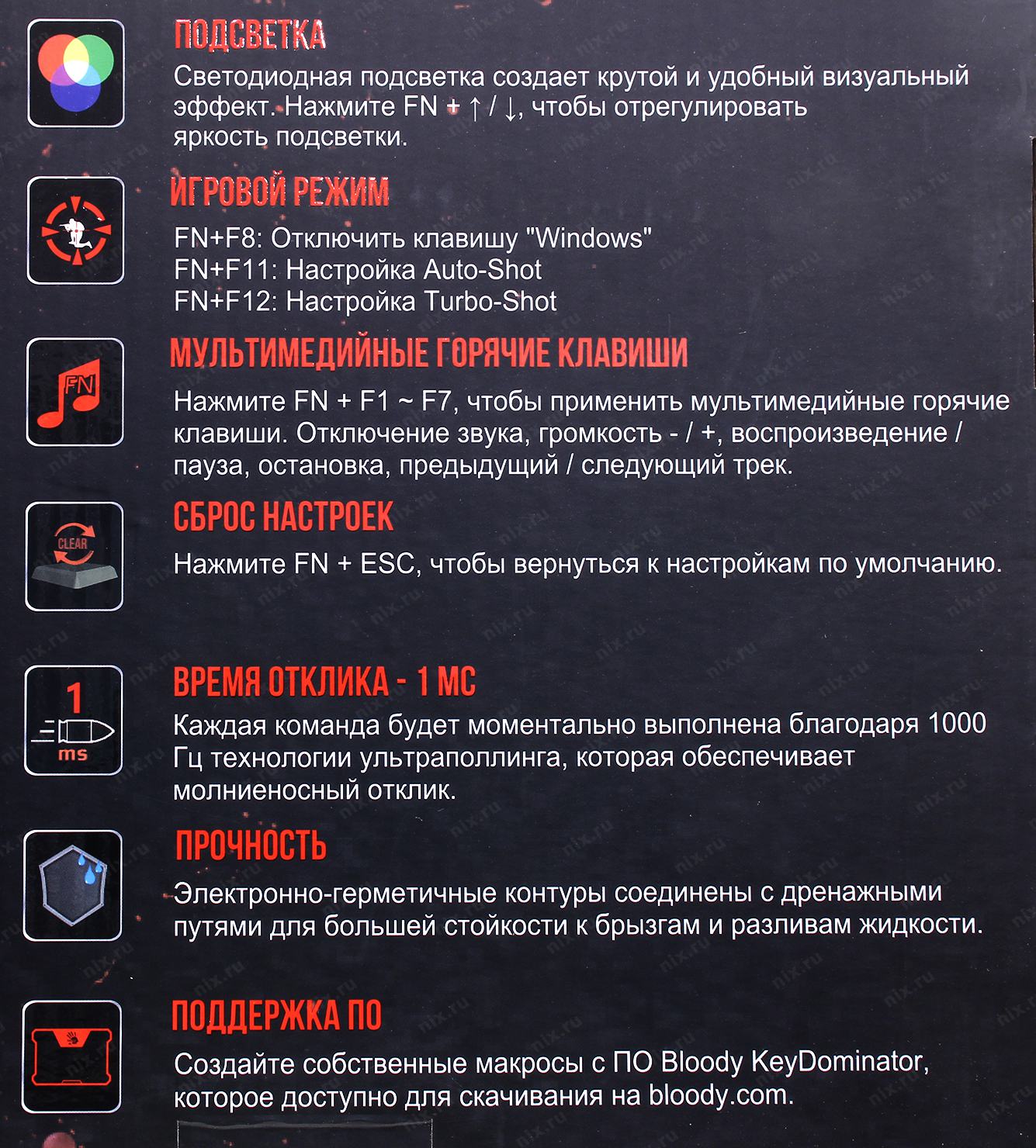 Клавиатура A4Tech B120N черный USB Multimedia for gamer LED (подставка для запястий) кабель 1.8м