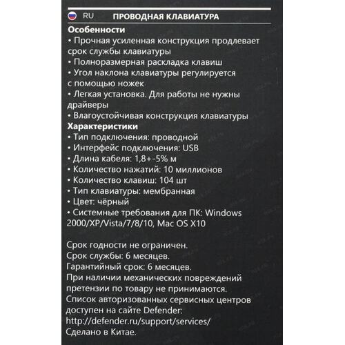 Клавиатура USB ASTRA HB-588 RU 45588 DEFENDER
