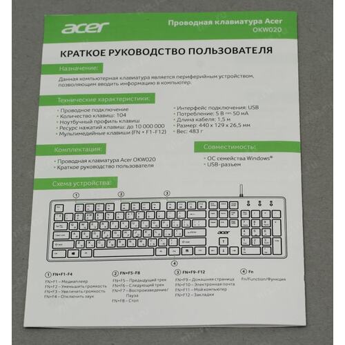 Клавиатура Acer OKW020 черный USB slim Multimedia (ZL.KBDEE.001) кабель 1.5м