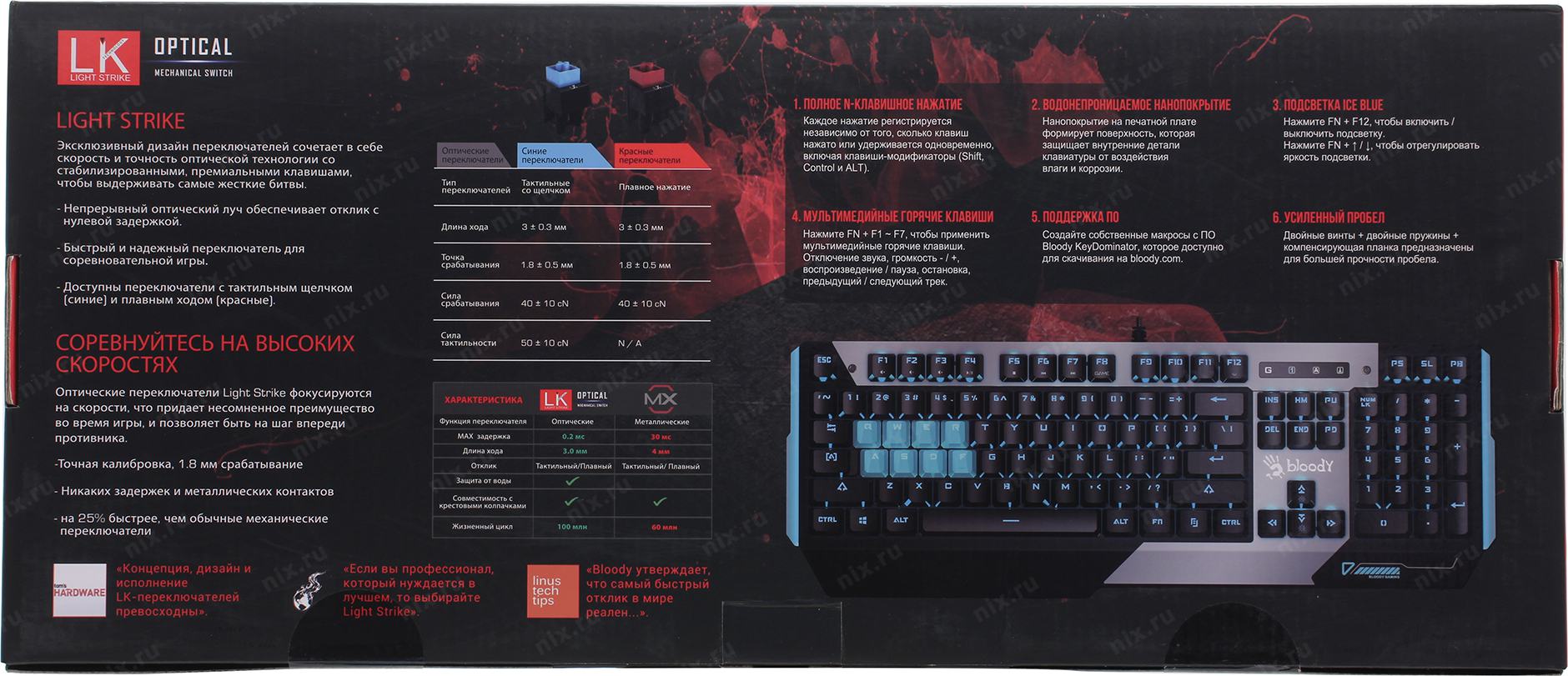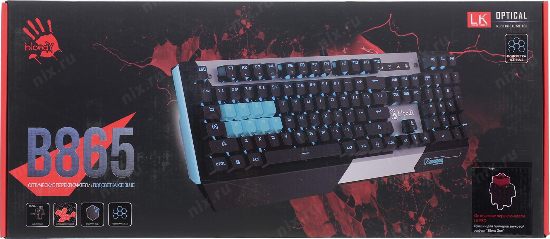 Клавиатура A4Tech B865 механическая серый/черный USB for gamer LED (B865 ICE BLUE) кабель 1.8м