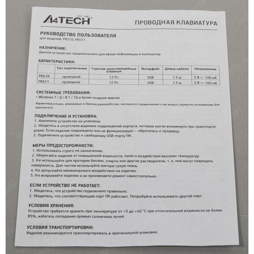 Клавиатура A4Tech FKS10 черный/синий USB (подставка для запястий) (FKS10 BLUE) кабель 1.5м