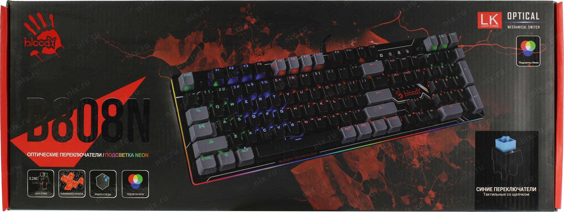 Клавиатура A4Tech B808N механическая черный/серый USB for gamer LED (B808N (RAVEN)) кабель 1.8м