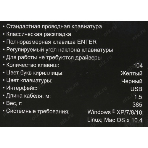 Клавиатуры Exegate EX279937RUS Клавиатура Exegate LY-331, <USB, шнур 1,5м, черная, 104кл, Enter большой>, OEM