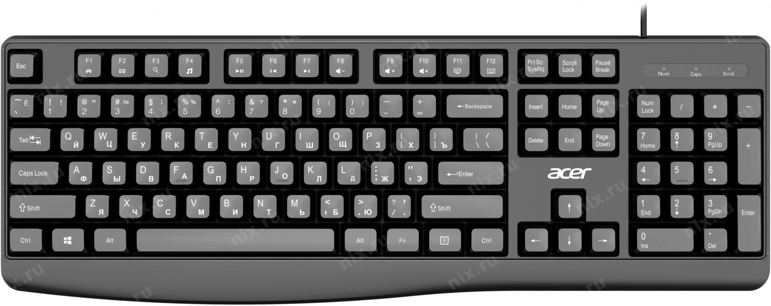 Клавиатура Acer OKW301 черный USB (ZL.KBDCC.01A) кабель 1.8м