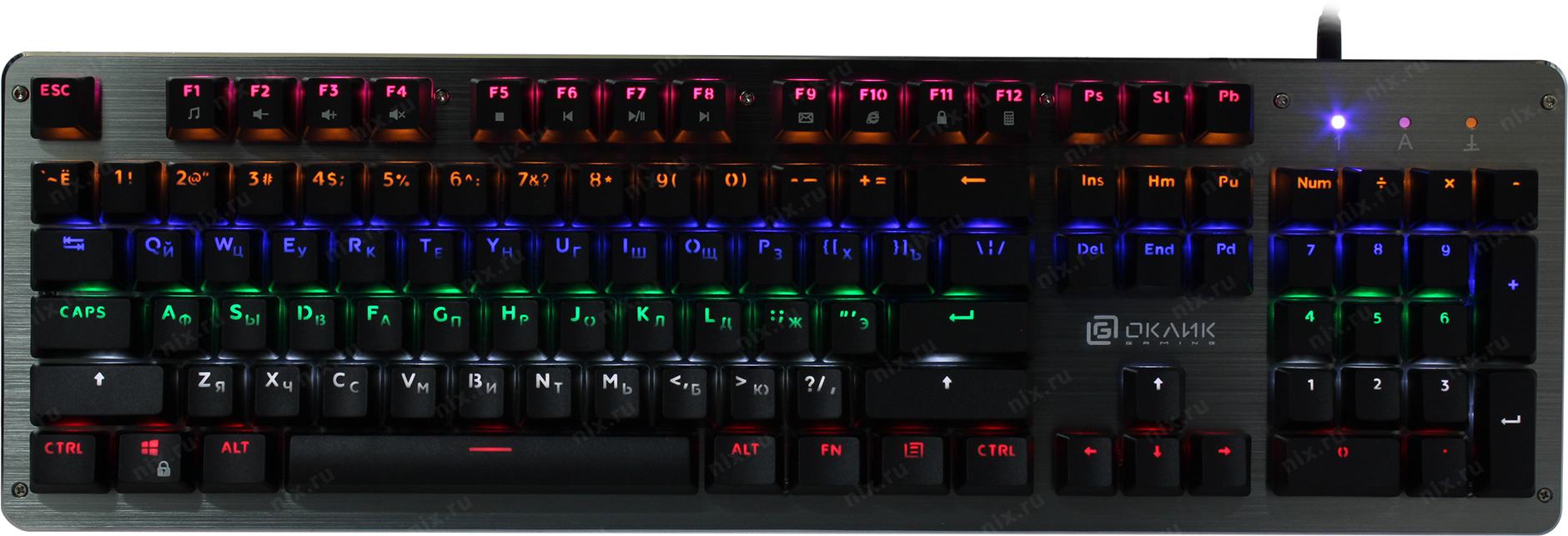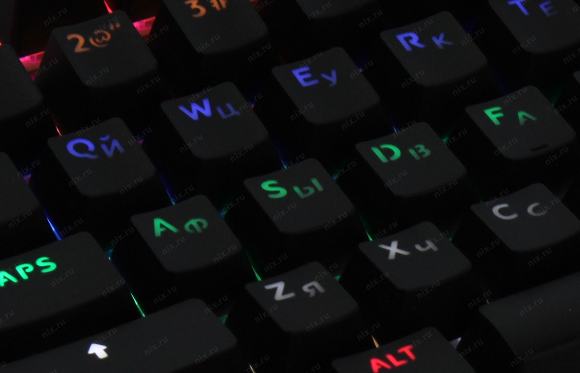 Anti-Ghosting неограниченное количество одновременных нажатий;;Ресурс клавиш до 50 000 000 нажатий;;Мультимедийные клавиши (FN-F1-F12);;6 цветов подсветки;;5 увроней яркости ;;кабель в прочной плетеной оплетке;;10 режимов подсветки
