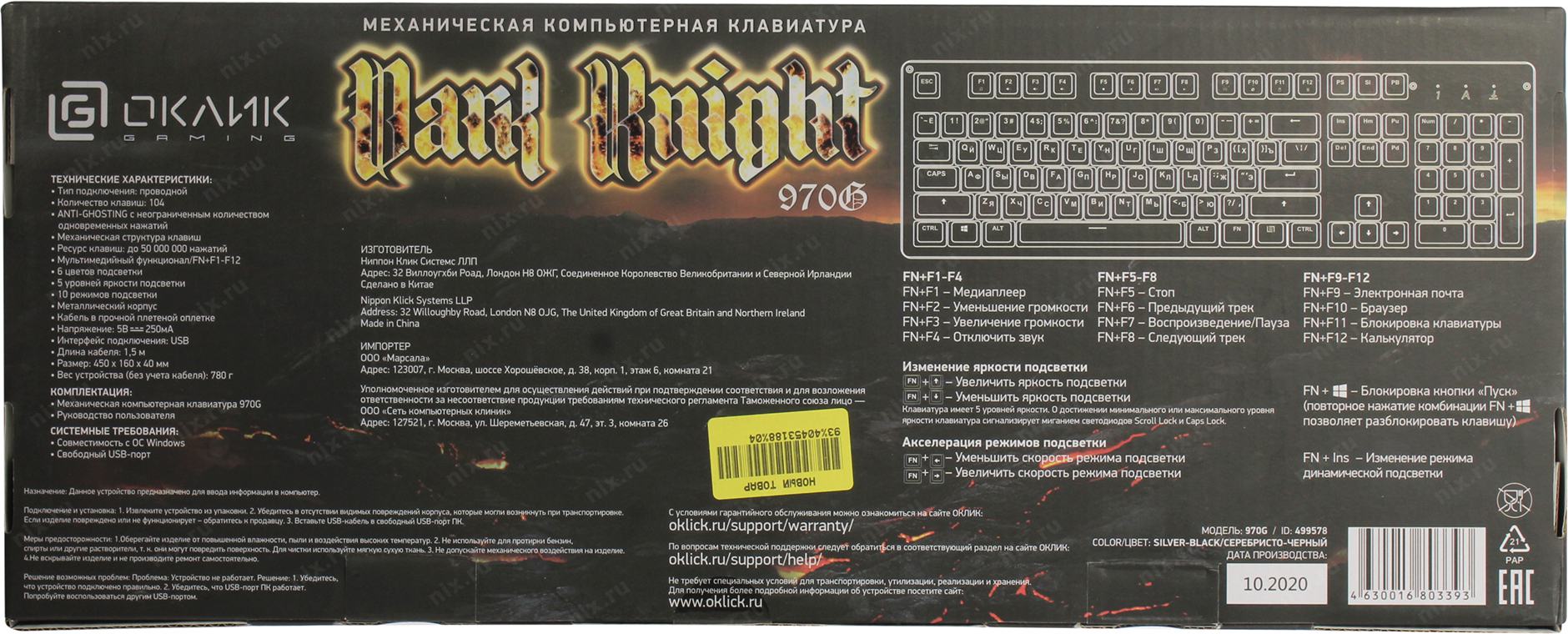 Клавиатура Оклик 970G Dark Knight механическая черный/серебристый USB for gamer LED OKLICK 499578
