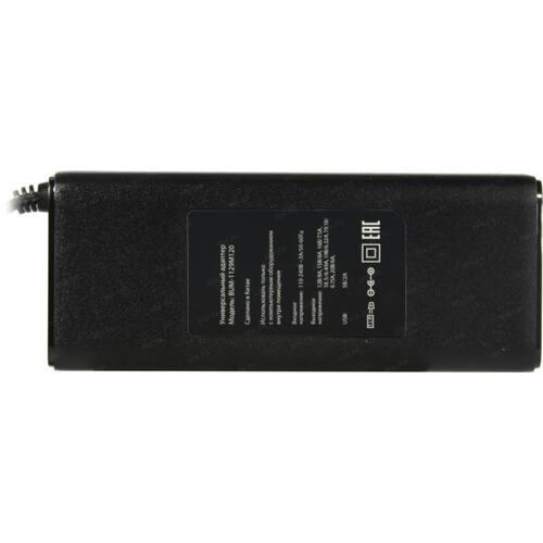 Универсальный сетевой адаптер для ноутбуков мощностью 120 ватт и USB-портом для зарядки мобильных телефонов и планшетов. В комплекте входят 11 сменных штекеров, подходящих к большинству ноутбуков. Выбор мощности для питания происходит в ручном режиме.