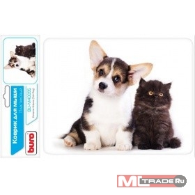 Коврик для мыши Buro BU-M40095 Мини рисунок/котенок и щенок 230x180x2мм (продается кратно 25 шт.)