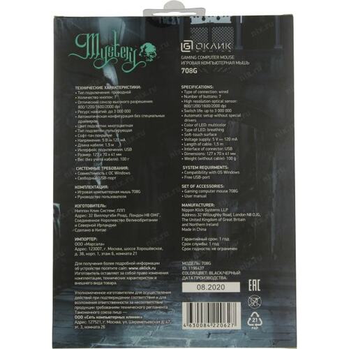 Мышь Оклик 708G MYSTERY черный оптическая 3200dpi USB 7but (1196437) OKLICK