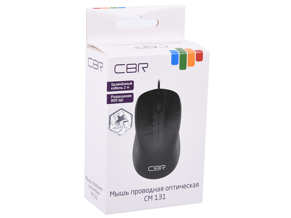 Мышь CBR CM 131 Black, USB, Мышь офисн., оптич., 1200 dpi, 3 кн., 2.0 м, резиновое колесо прокрутки, ABS-пластик [CM131Black]