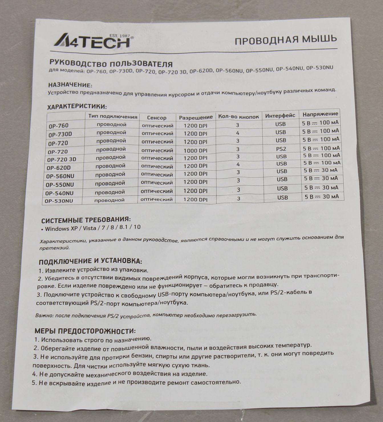 Мышь A4Tech OP-620D черный оптическая 1000dpi USB 4but
