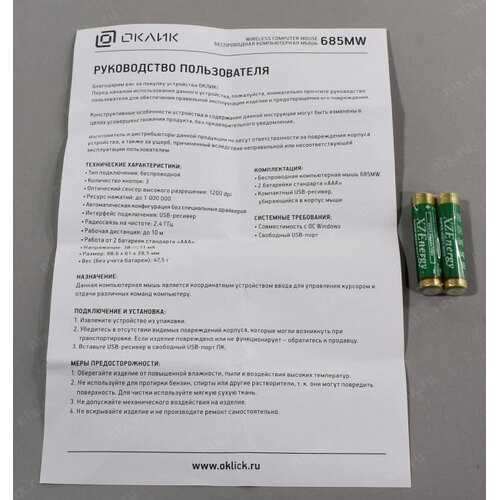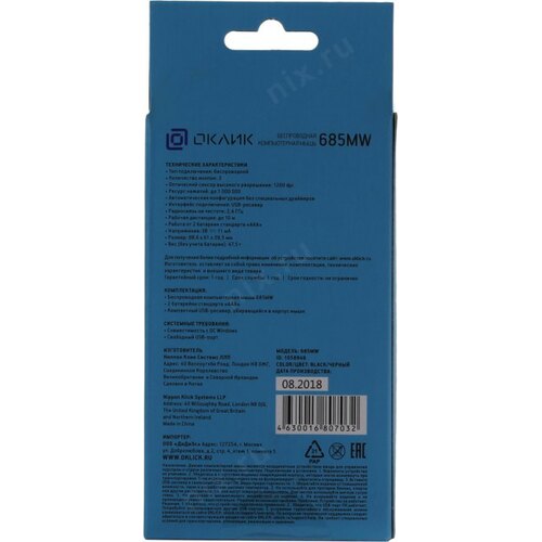 Мышь Оклик 685MW черный оптическая 1200dpi беспров. USB для ноутбука 3but (1058946) OKLICK