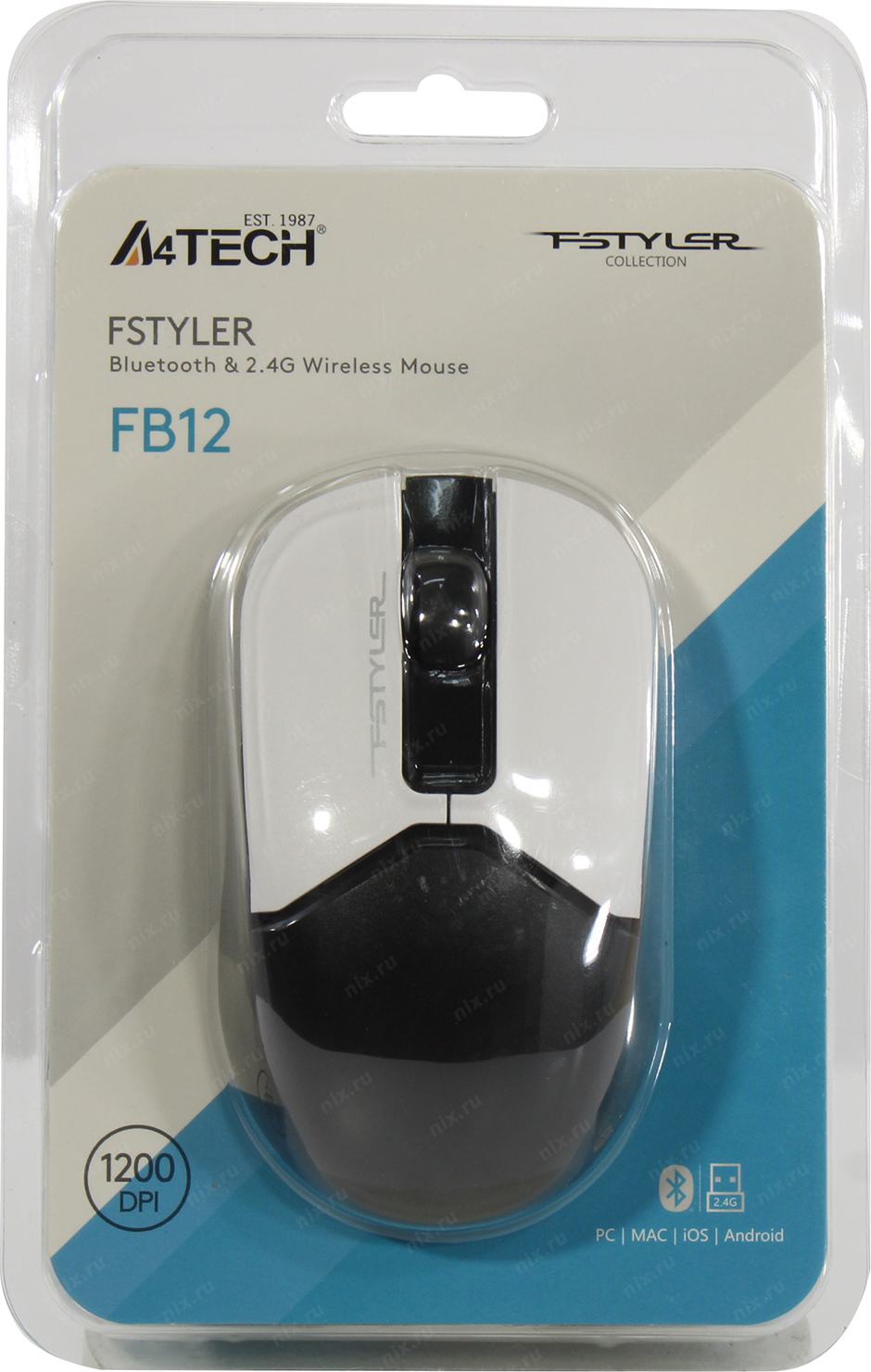 Мышь A4Tech Fstyler FB12 белый/черный оптическая 1200dpi беспров. BT/Radio USB 3but (FB12 PANDA)