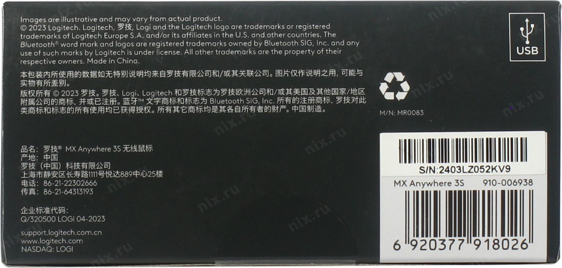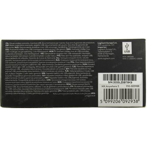Мышь 910-006929/910-006938 Мышь Logitech MX Anywhere 3S графитовый лазерная (4000dpi) беспроводная BT/Radio USB для ноутбука (6but)