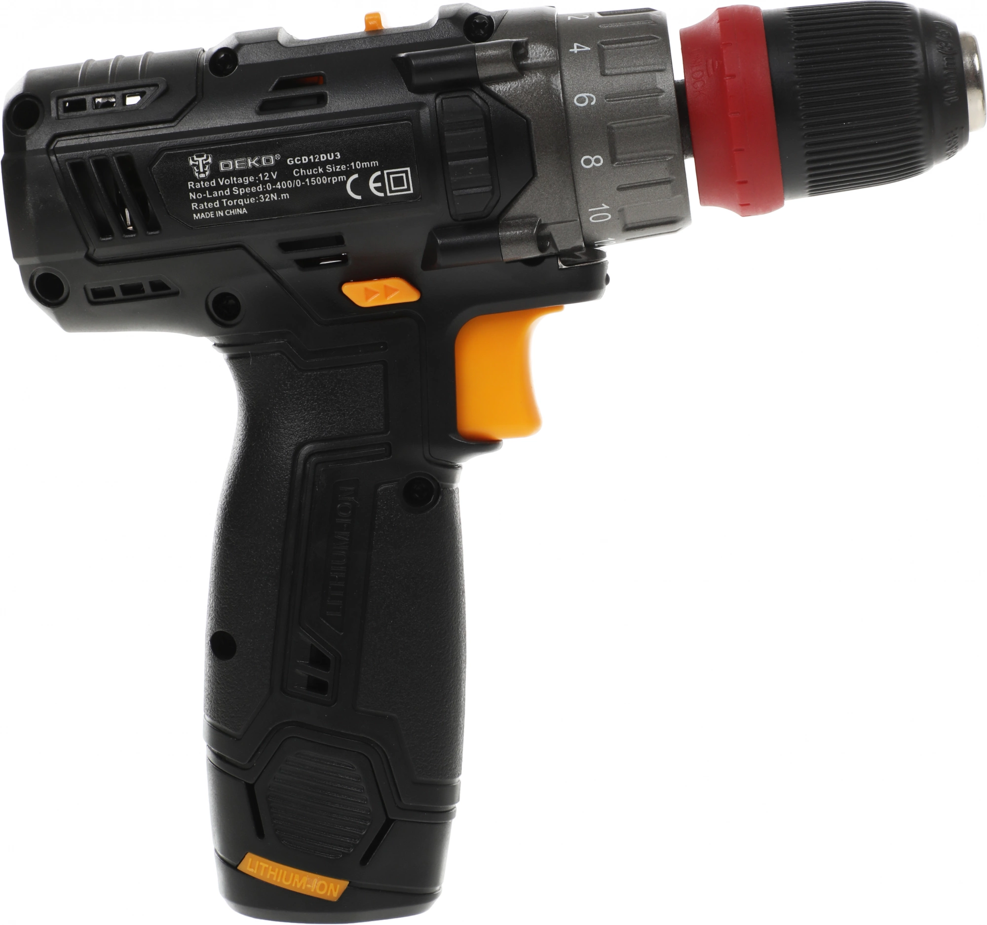 Дрель-шуруповерт, АКБ, зарядное устройство, бита, руководство по эксплуатации.