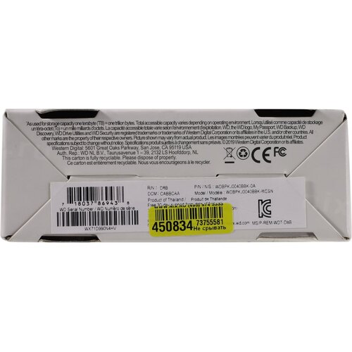 Внешний жесткий диск USB3 4TB EXT. 2.5" BLACK WDBPKJ0040BBK-WESN WESTERN DIGITAL
