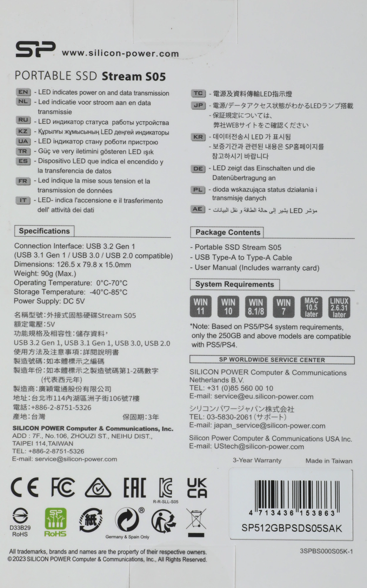 Накопитель SSD Silicon Power USB3.0 512GB SP512GBPSDS05SAK S05 Stream 1.8" черный