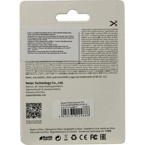 Карта памяти Micro SecureDigital 16GB Netac MicroSD P500 Extreme Pro Retail version card only [NT02P500PRO-016G-S]
