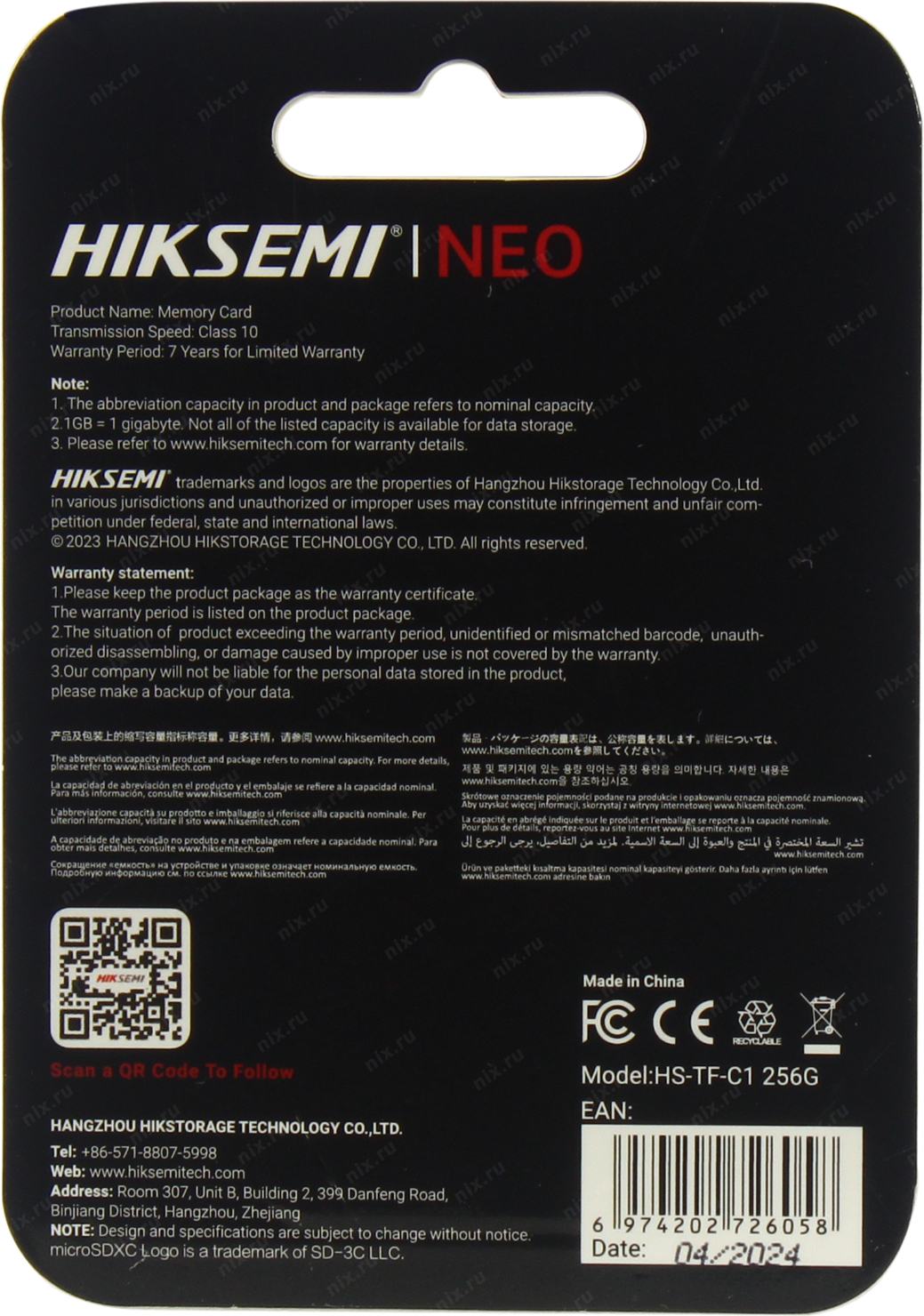 Флеш карта microSDXC 256GB Hikvision HS-TF-C1(STD)/256G/ZAZ01X00/OD C1 V30 w/o adapter