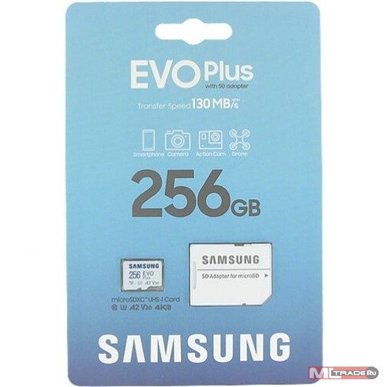 Карта памяти Micro SecureDigital 256Gb Samsung MB-MC256KA/RU/KR/APC/EU EVO PLUS + adapter