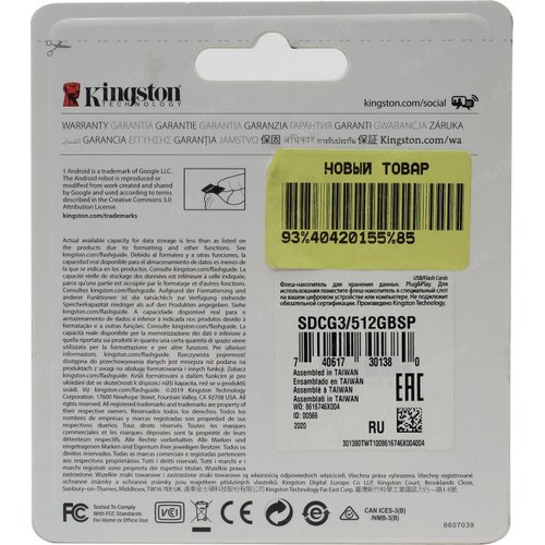 Флеш карта microSDXC 512GB Kingston SDCG3/512GBSP Canvas Go! Plus w/o adapter