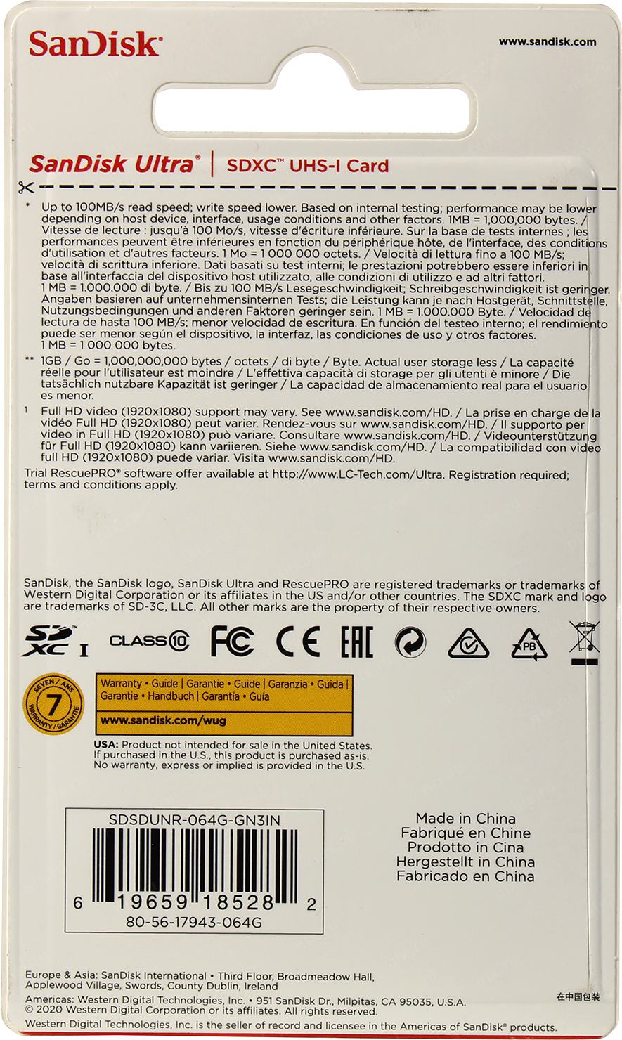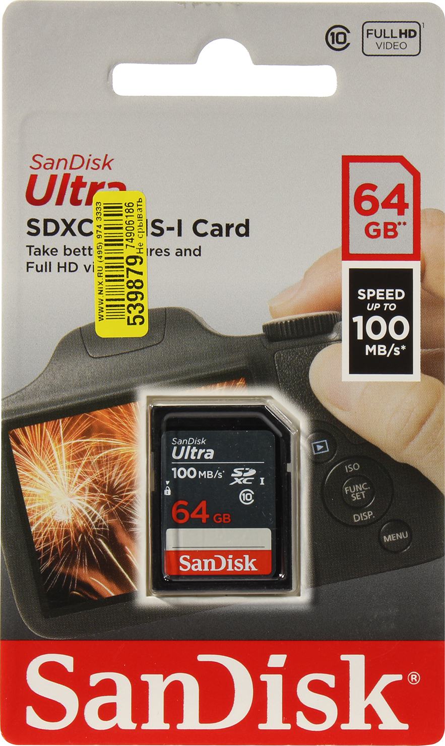 Карта памяти SanDisk Ultra 64GB SDXC Memory Card 100MB/s (SDSDUNR-064G-GN3IN)