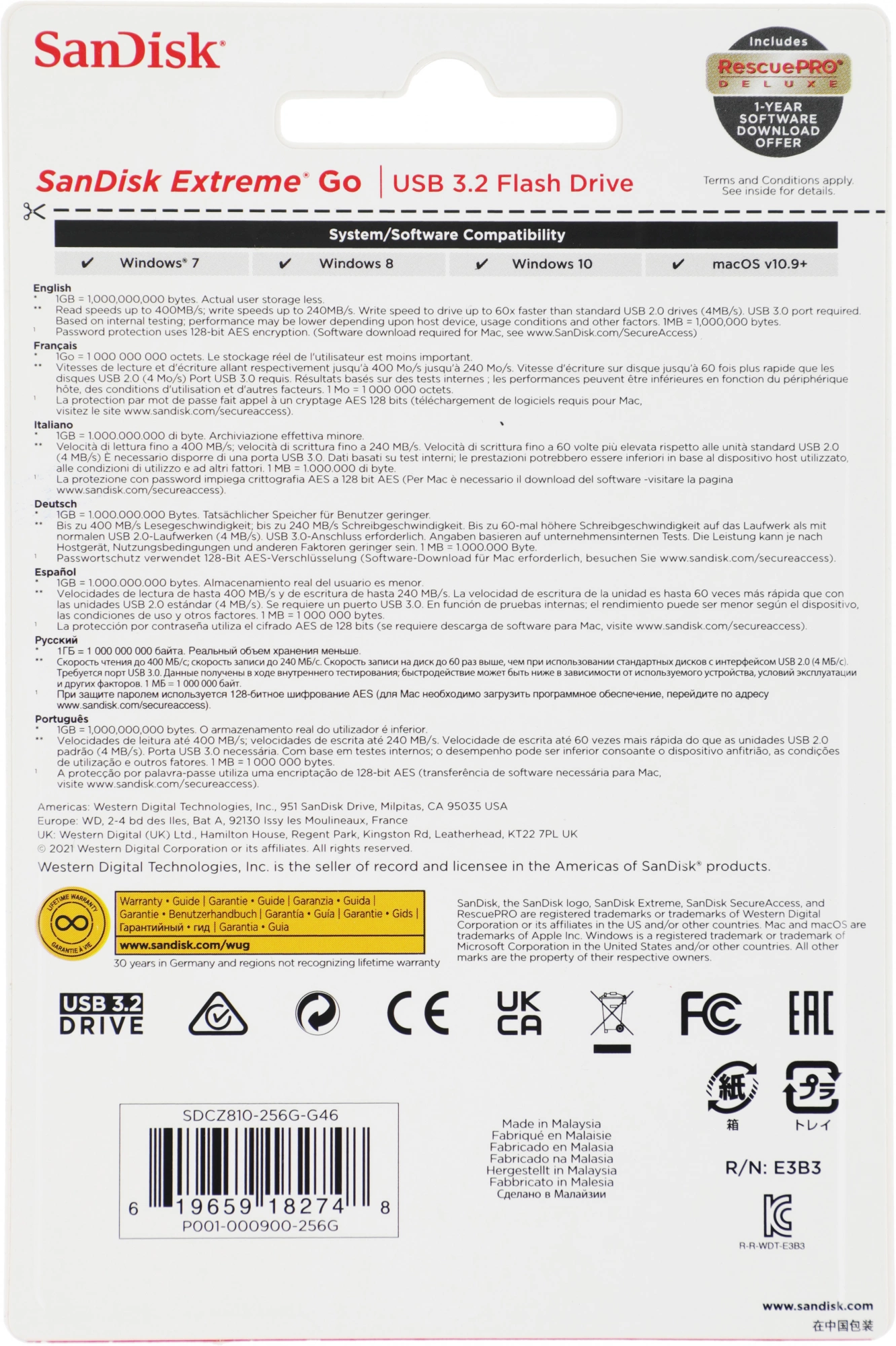 Флэш-накопитель USB3.2 256GB SDCZ96-256G-G46 SANDISK