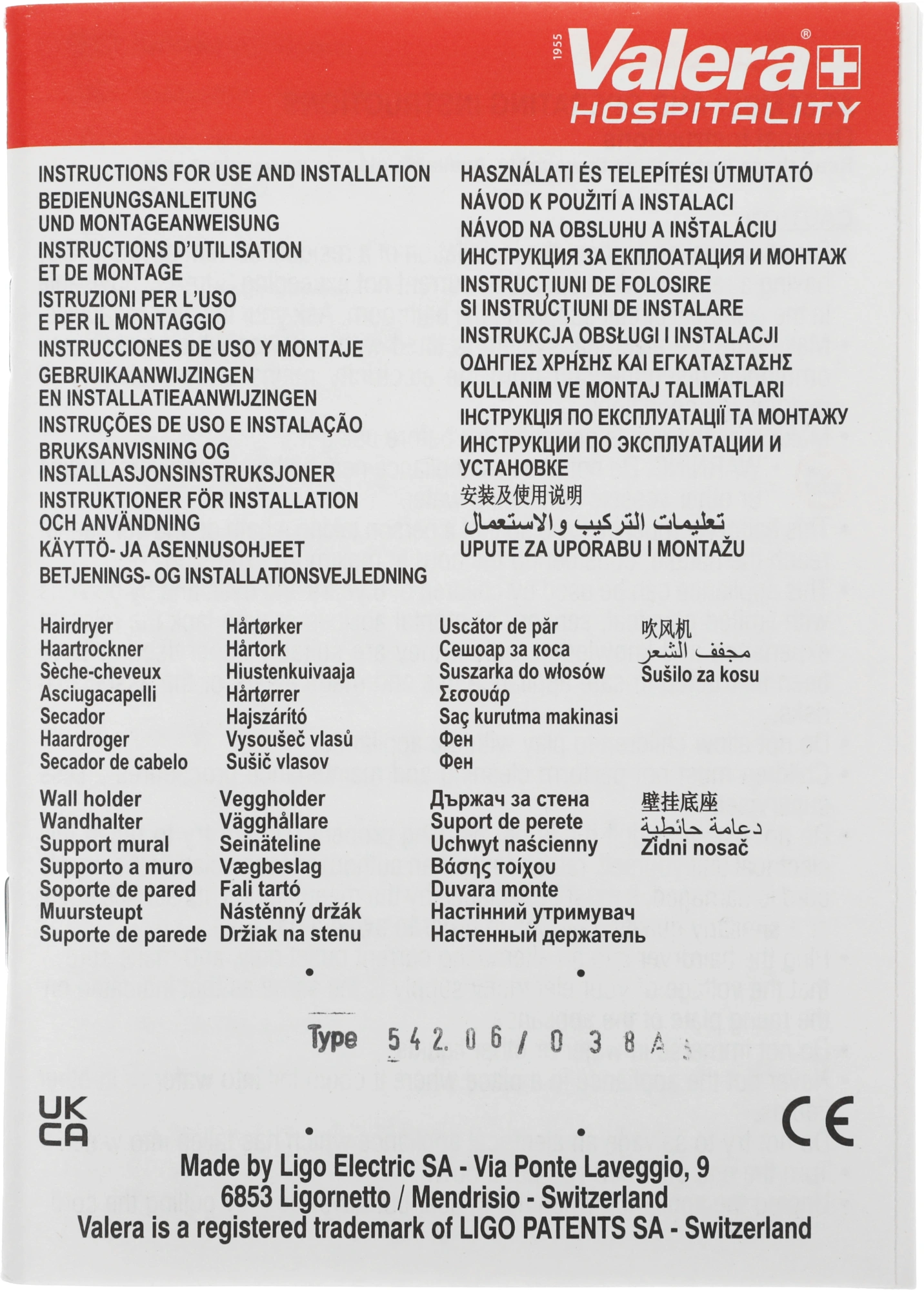 Фен Valera Hospitality Action Super Plus 1600 1600Вт белый/ хром (542.06/ 038A WHITE)