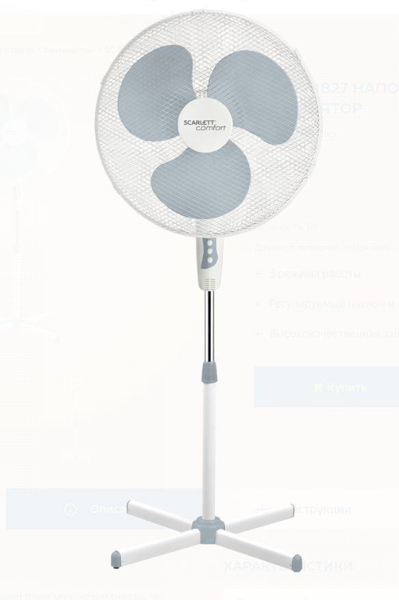 Вентилятор напольный Scarlett SC-SF111B27 40Вт скоростей:3 белый/серый