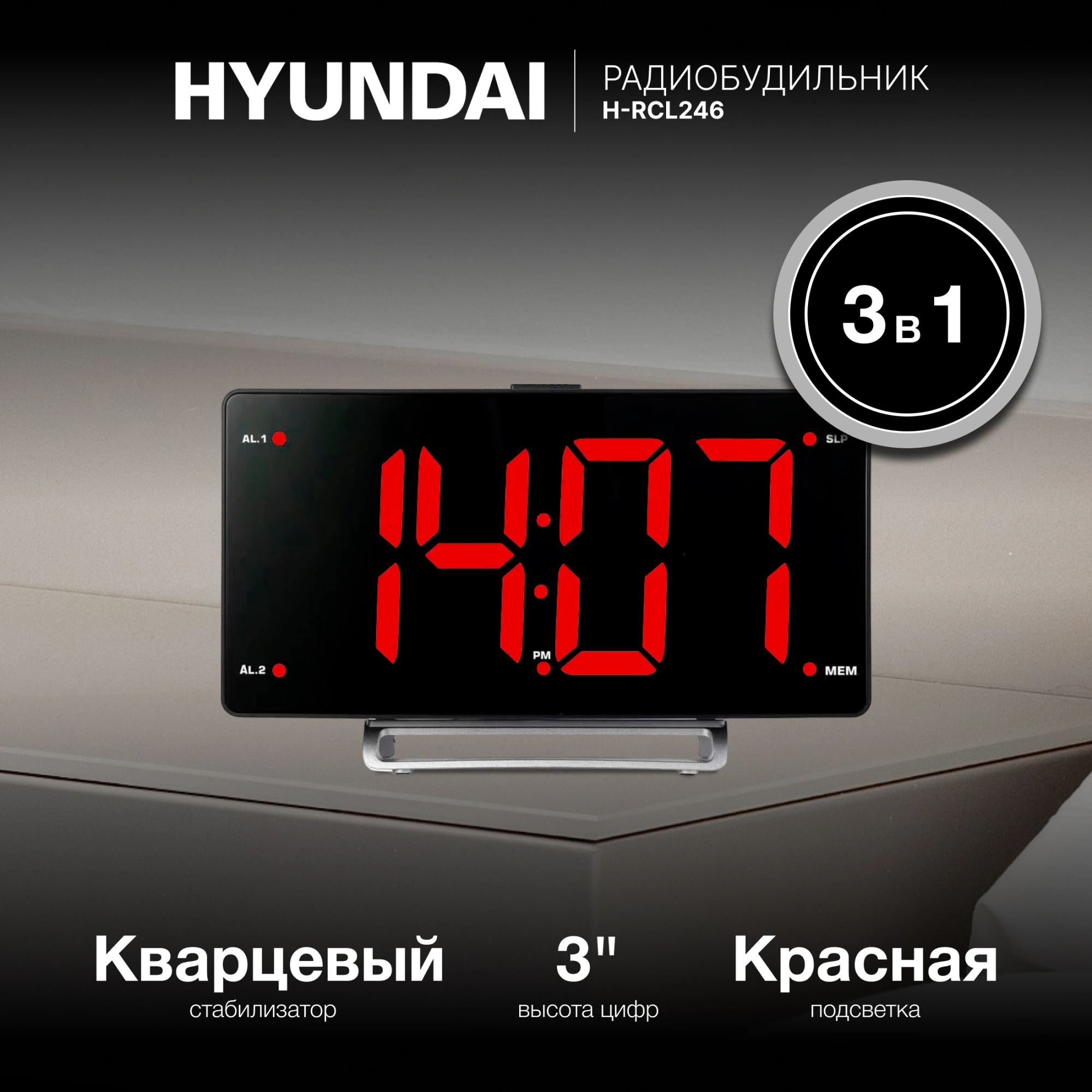 Радиобудильник Hyundai H-RCL200 черный LED подсв: