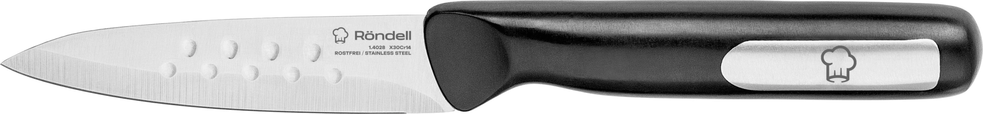 Нож кухонный Rondell Spata RD-1138 стальной универсальный для овощей лезв.100мм прямая заточка черный блистер