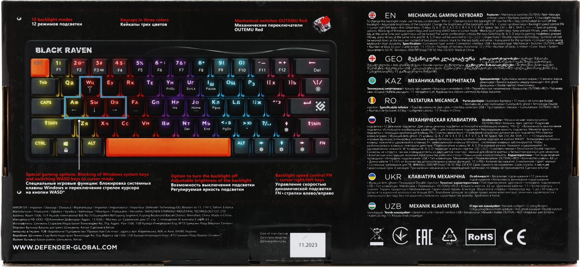 Клавиатура, кейкапы трех цветов, гарантийный талон