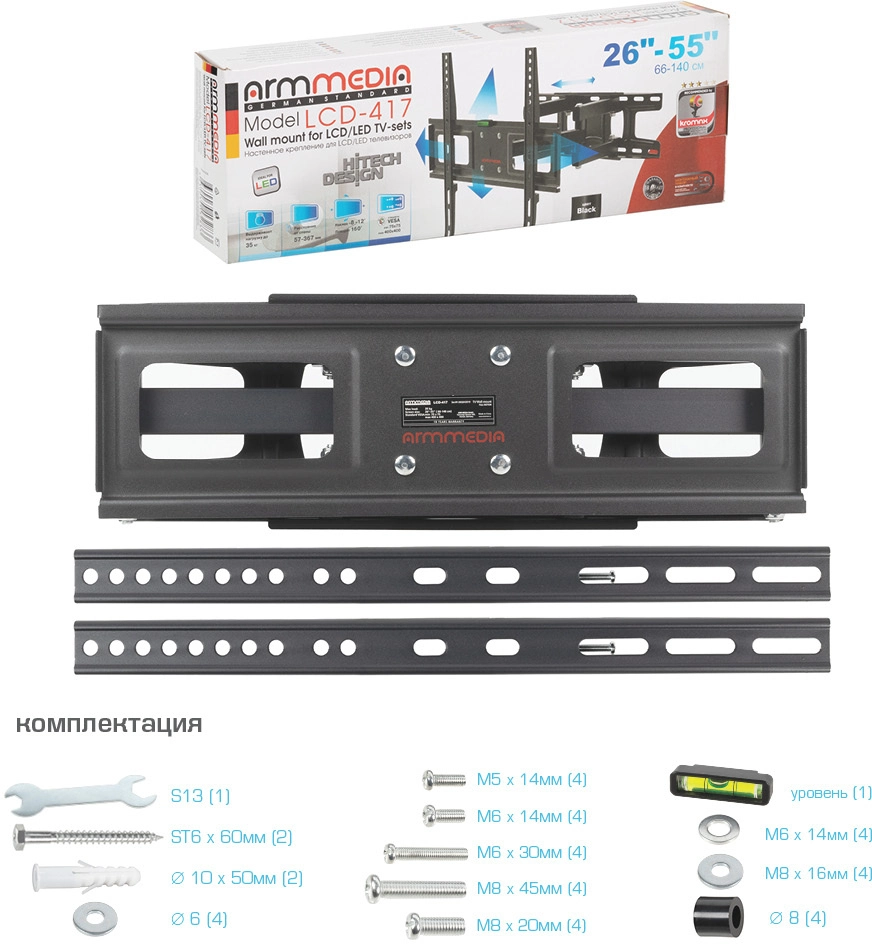 Крепеж Arm Media LCD-417 черный 26" -55" макс.35кг настенный поворотно-выдвижной и наклонный [10238]