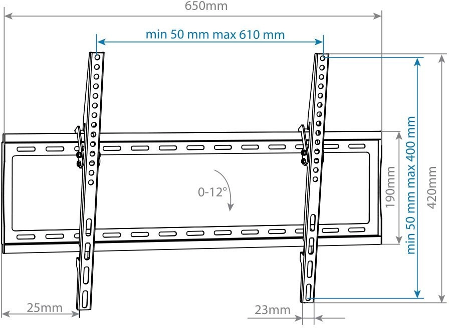 Кронштейн STEEL-2, для LED/ LCD/ PLASMA телевизоров 32" -90" , max 40 кг, настенный, 1 степень свободы, наклон 0°-12°, от стены 25 мм , max VESA 600x400 мм, крепление направляющей с «двойным крючком».