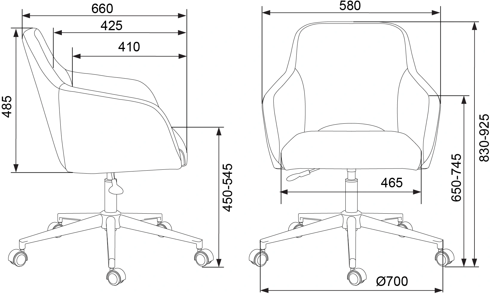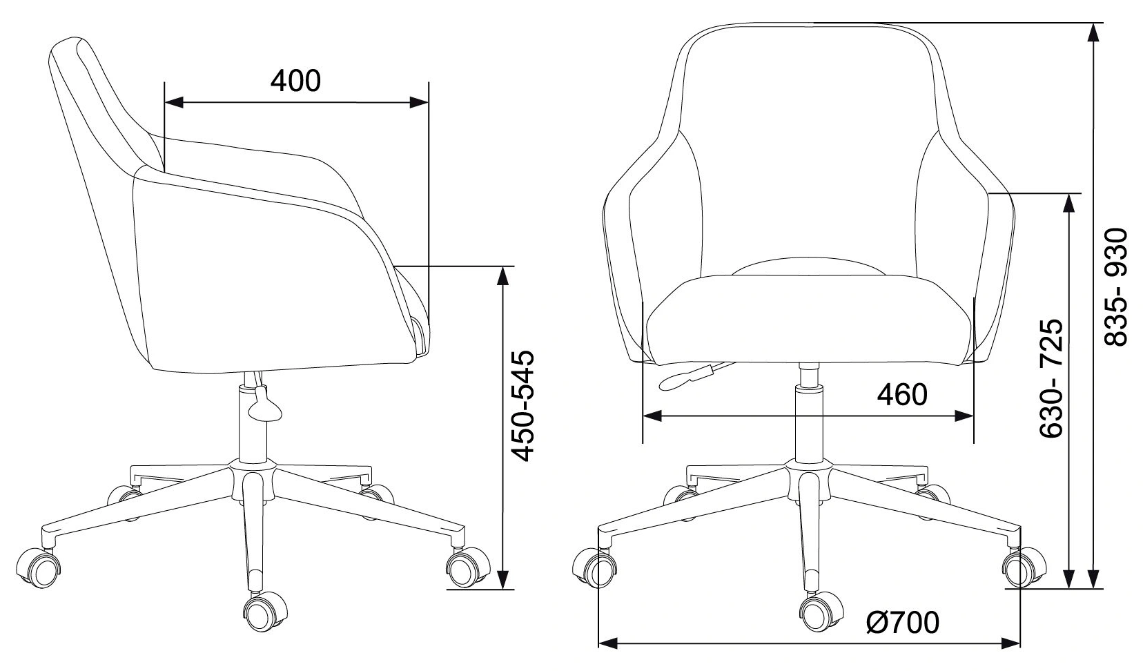 Высота с подлокотниками MIN