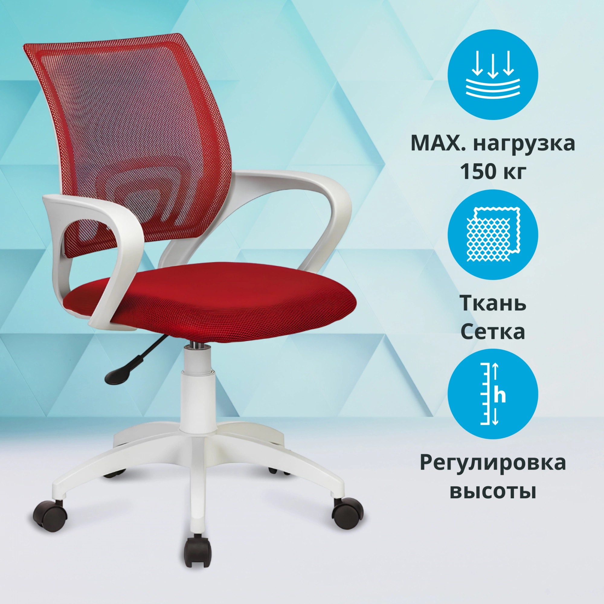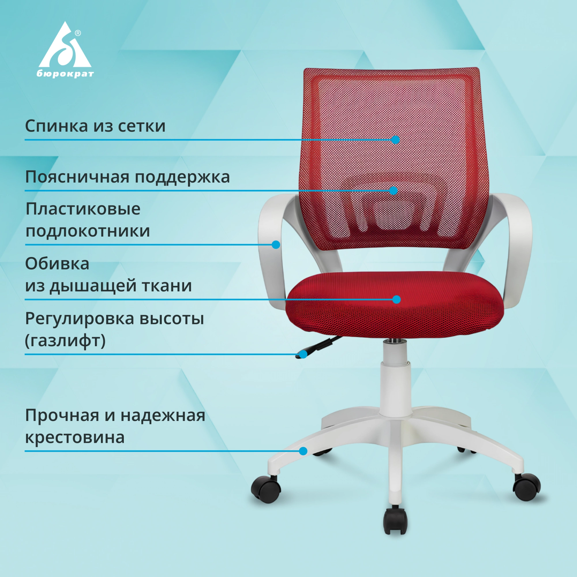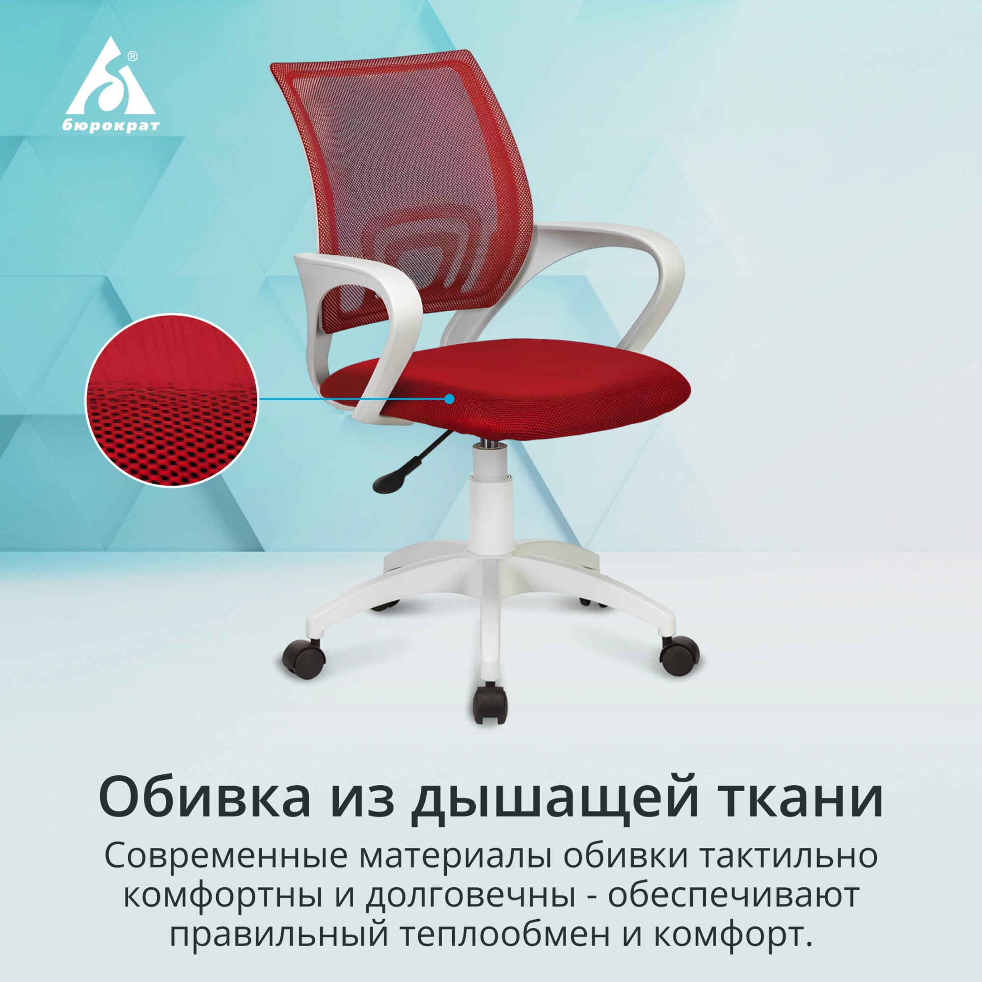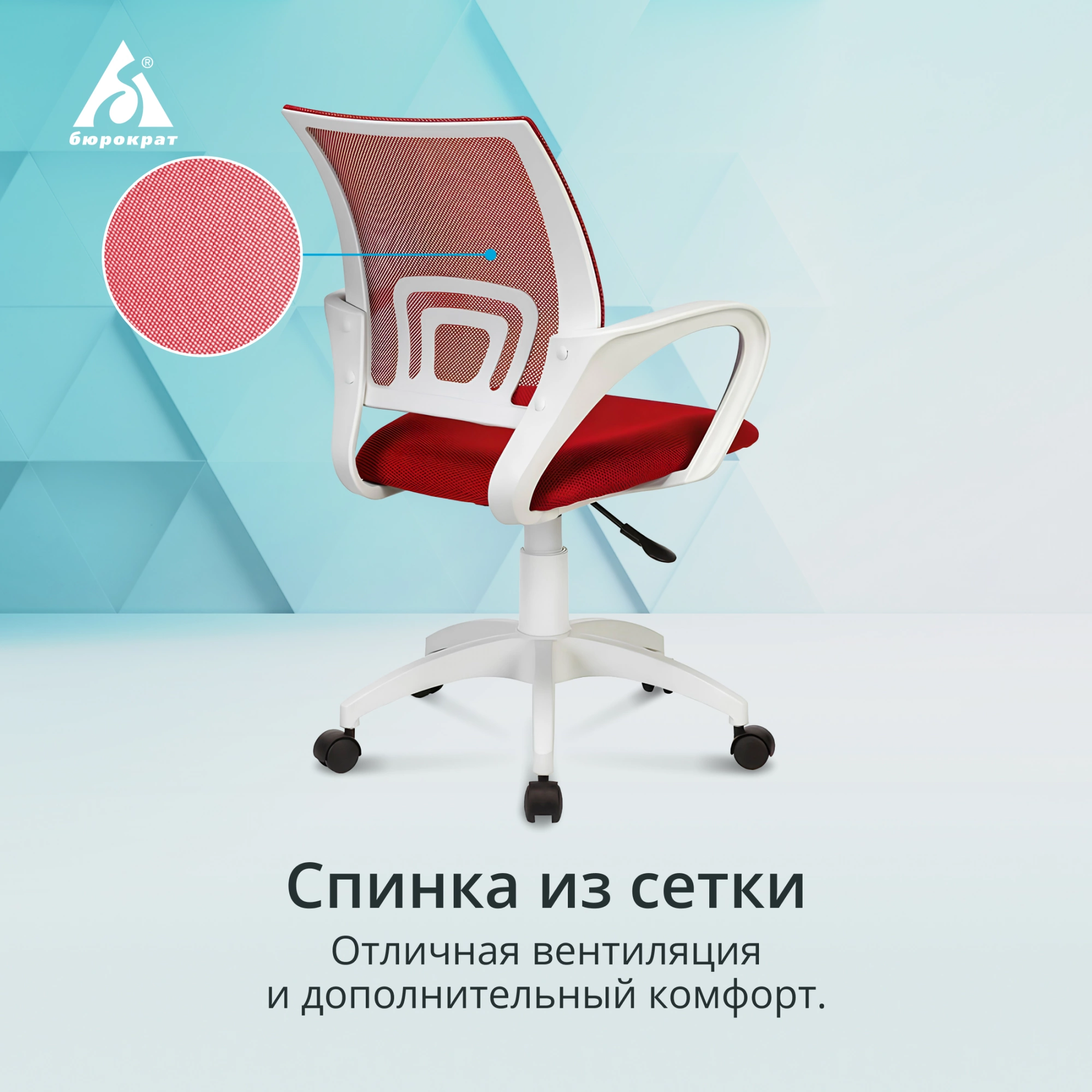 Кресло Бюрократ CH W696 красный TW-35N сиденье красный TW-97N сетка/ ткань крестов. пластик пластик белый CH W696 R