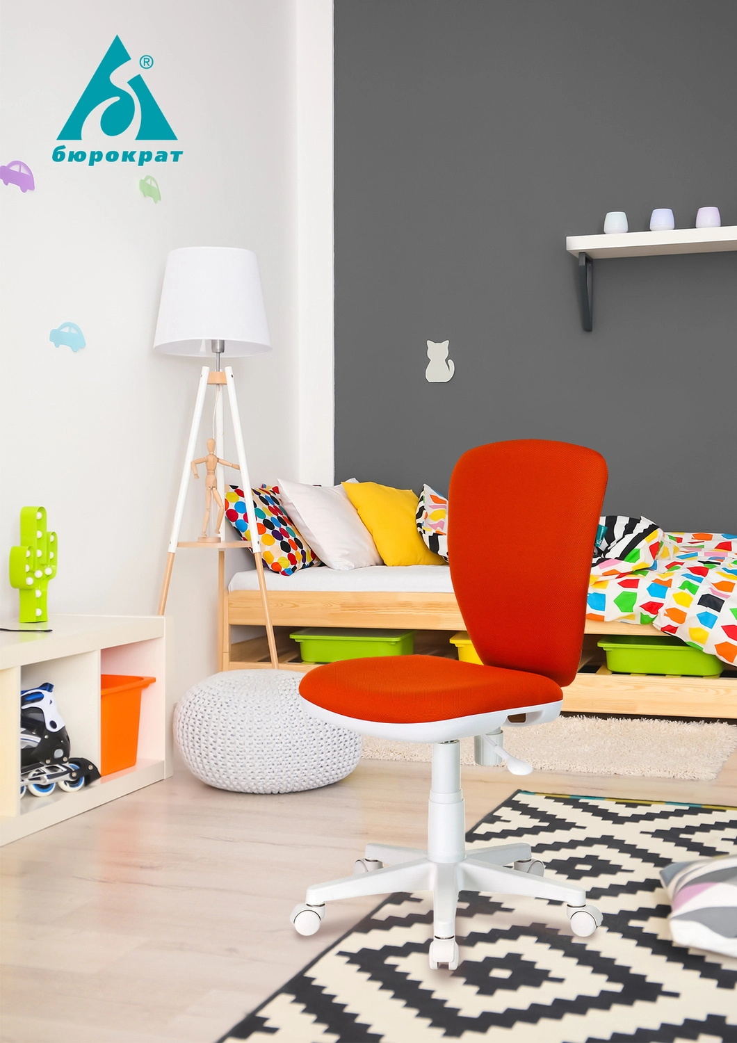 Кресло детское Бюрократ KD-W10 оранжевый 26-29-1 крестов. пластик пластик белый KD-W10/ 26-29-1