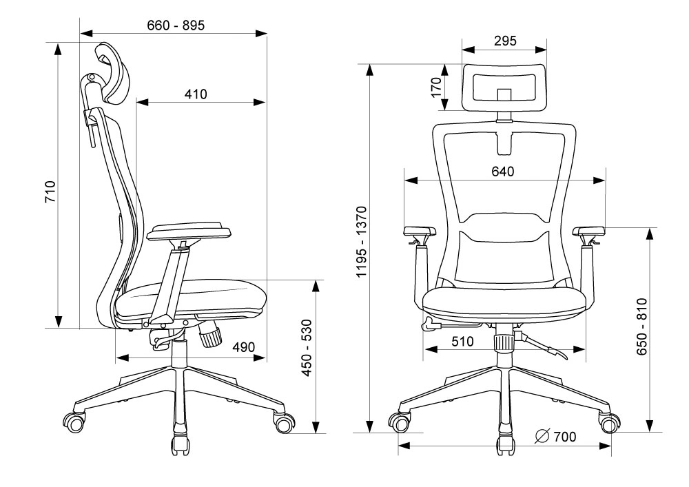 высоты (газлифт) , высоты подголовника, высоты подлокотников, поясничной области, угла наклона подголовника