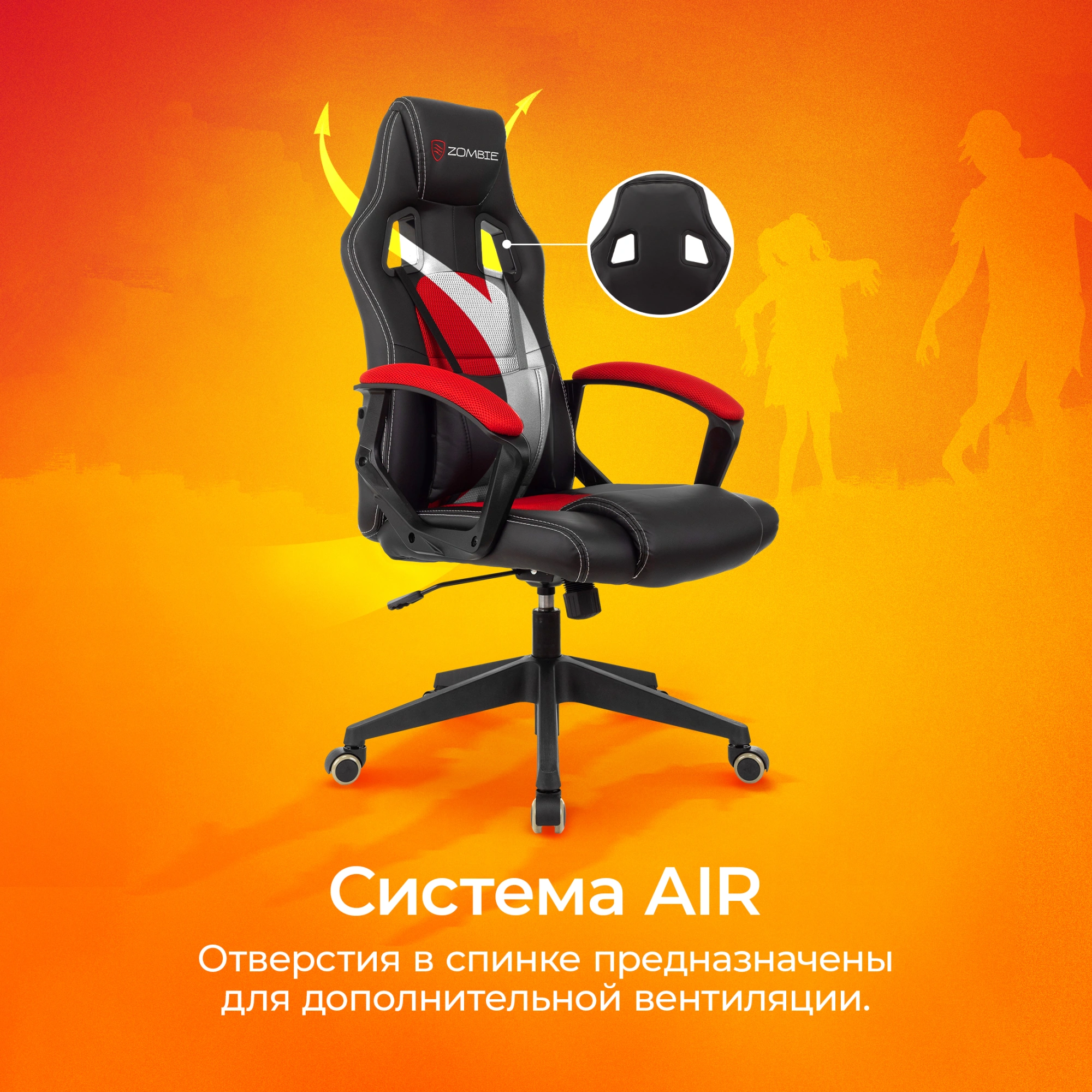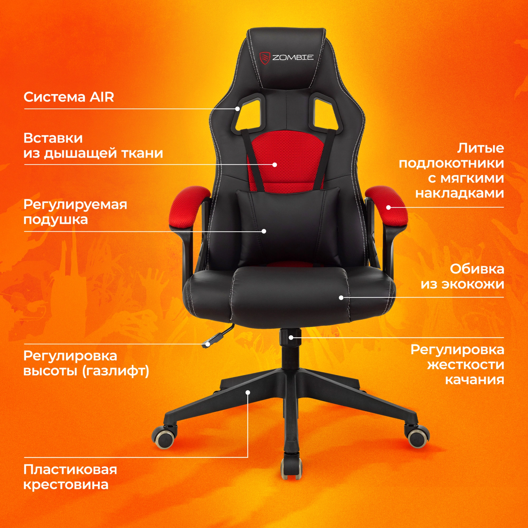 Кресло игровое Zombie Arena черный/ красный ткань/ эко.кожа крестов. пластик ZOMBIE ARENA RED