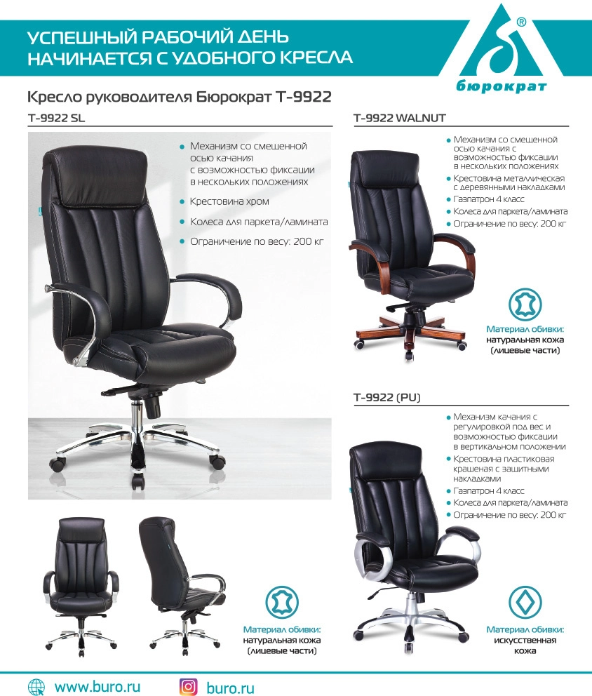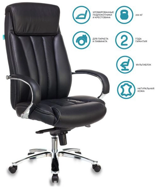 Кресло руководителя Бюрократ T-9922SL черный кожа крестов. металл хром T-9922SL/ BLACK