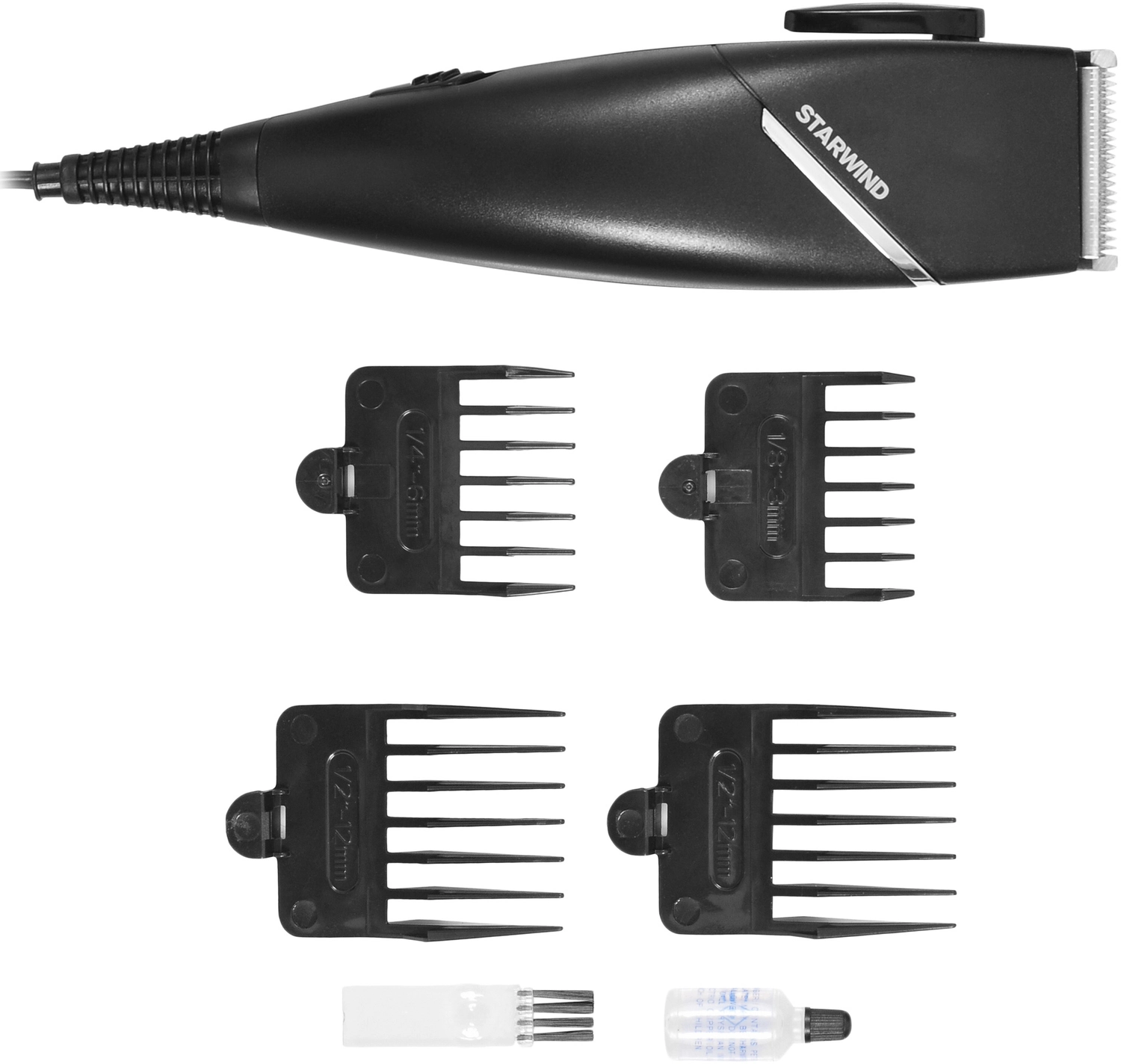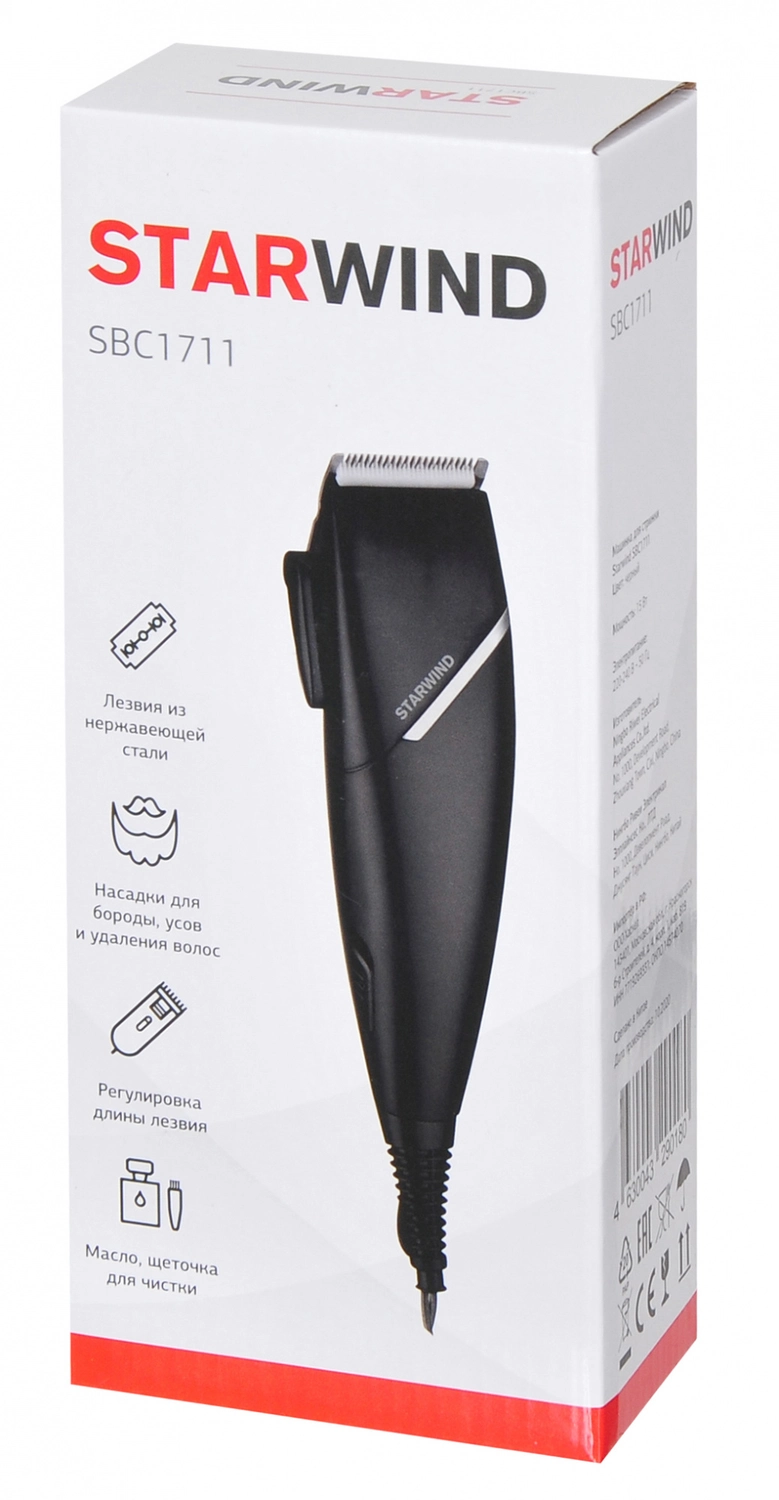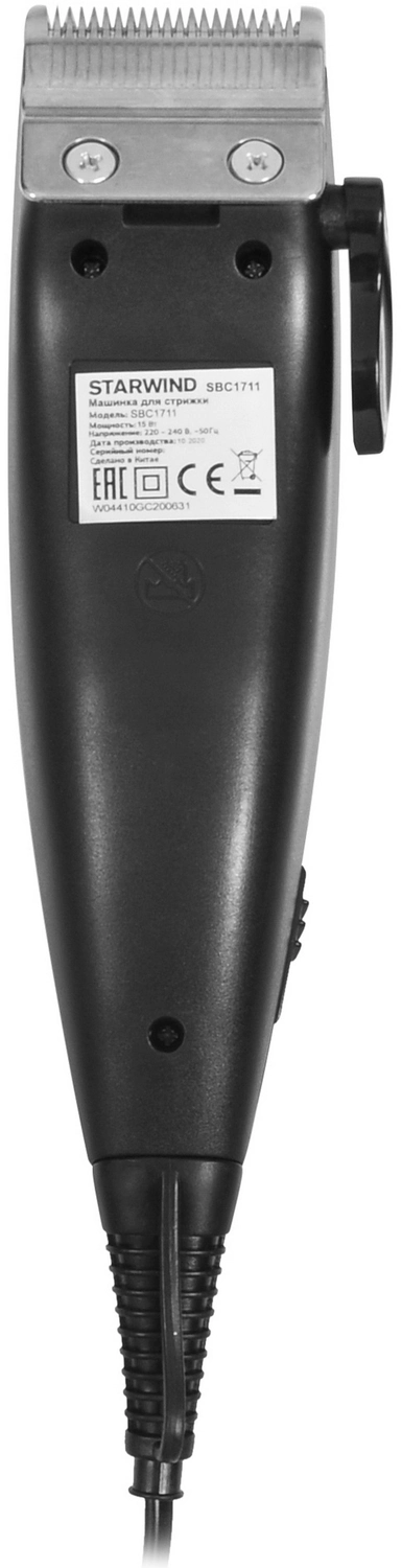Машинка для стрижки Starwind SBC1711 черный/ серебристый 15Вт (насадок в компл:4шт)
