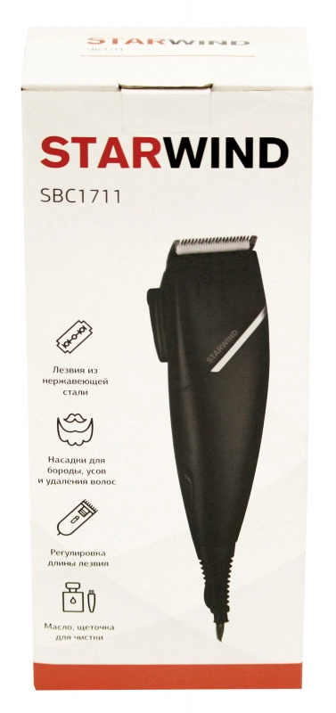 Машинка для стрижки Starwind SBC1711 регулирует длину волос от 0, 5 до 12 мм. Лезвия выполнены из нержавеющей стали, они прослужат не один год и долго останутся острыми. Встроенная технология позволяет снимать насадки одним щелчком, что облегчает уход за ними.