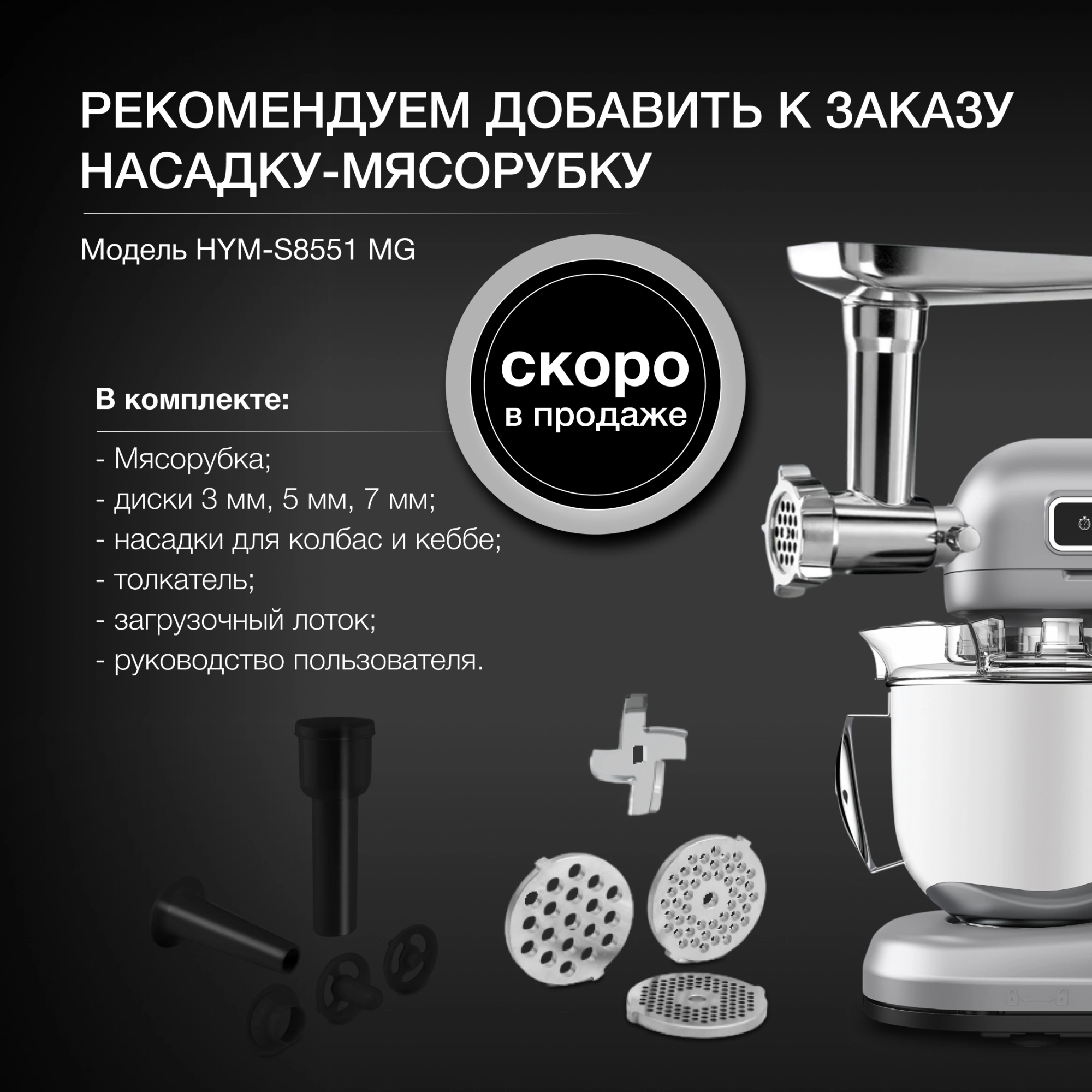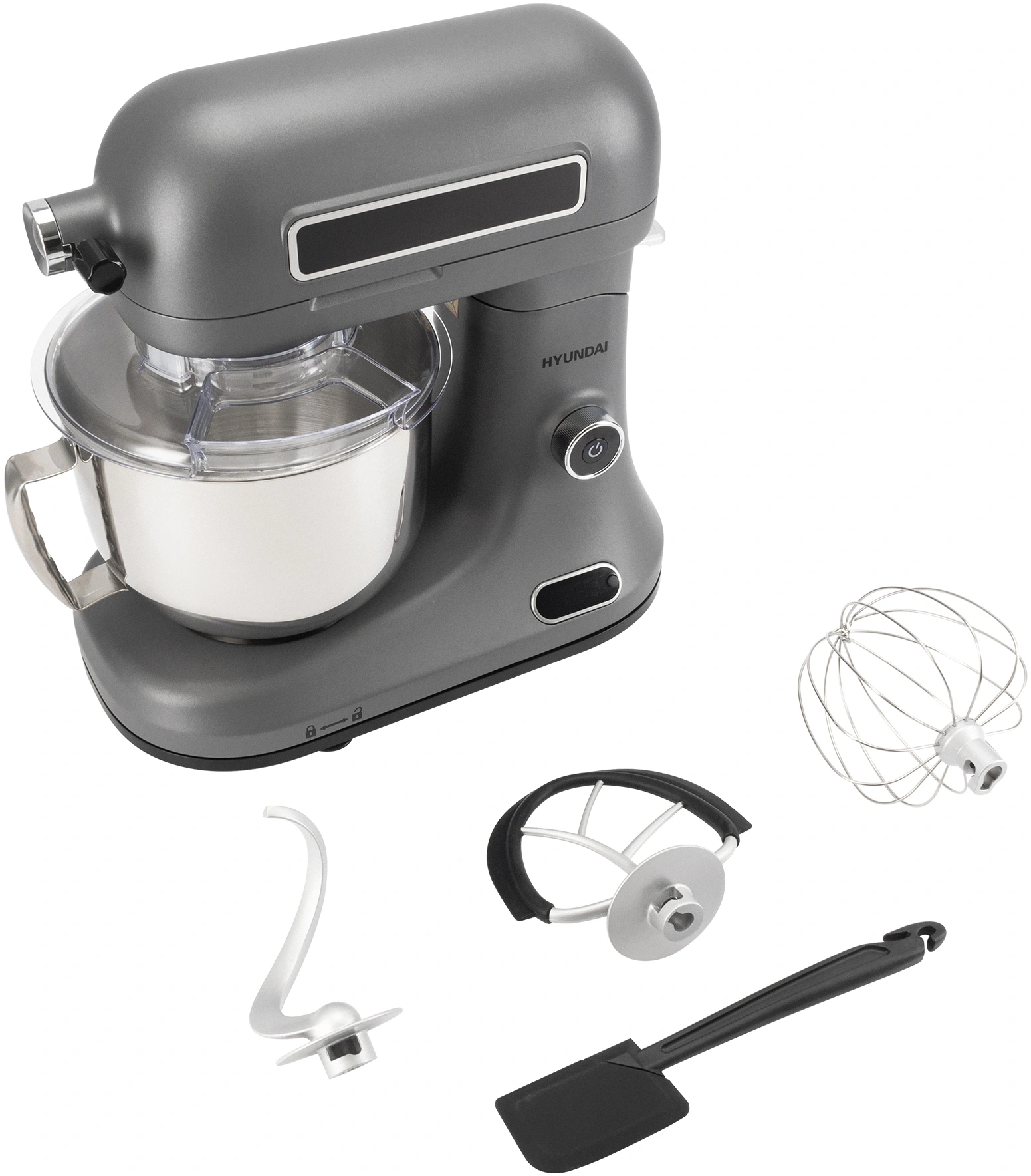 Миксер; чаша; защитная крышка; насадка-венчик; насадка-лопатка с гибким ребром; насадка-крюк; кулинарная силиконовая лопатка; книга рецептов; инструкция с гарантийным талоном