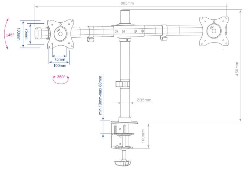 Настольный держатель для эргономичной регулировки положения 2 дисплеев с диагональю от 15 до 32 дюймов