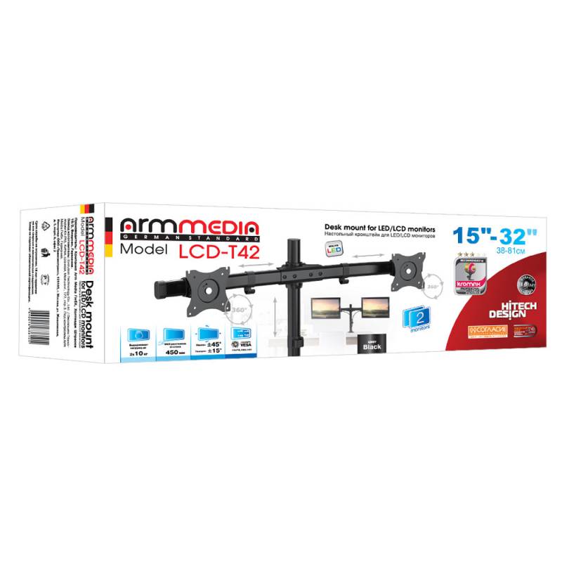 Крепления для мониторов Arm Media LCD-T42 черный 15"-32" макс.20кг настольный поворот и наклон верт.перемещ. [10165]