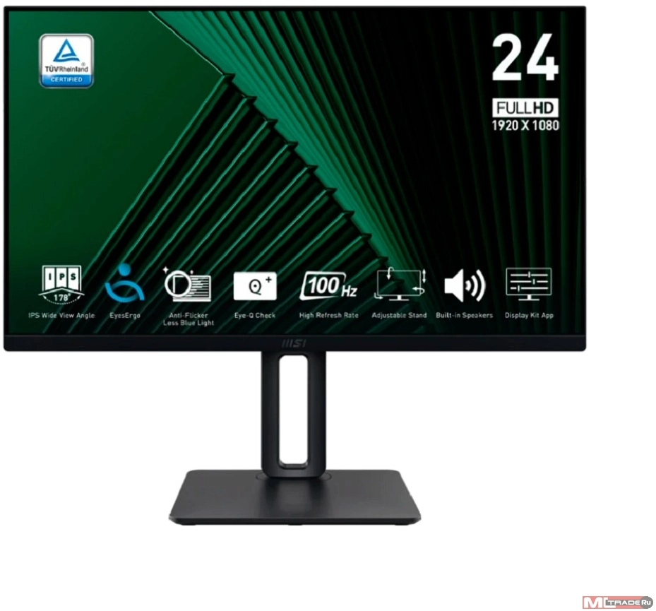 Монитор 23.8" MSI PRO MP245PG Black (IPS, 1920x1080, D-Sub+HDMI+DP, 4 ms, 178°/178°, 300 cd/m, 1300:1, 100Hz, Spk, Pivot) (3PC1) 9S6-3PC19M-014