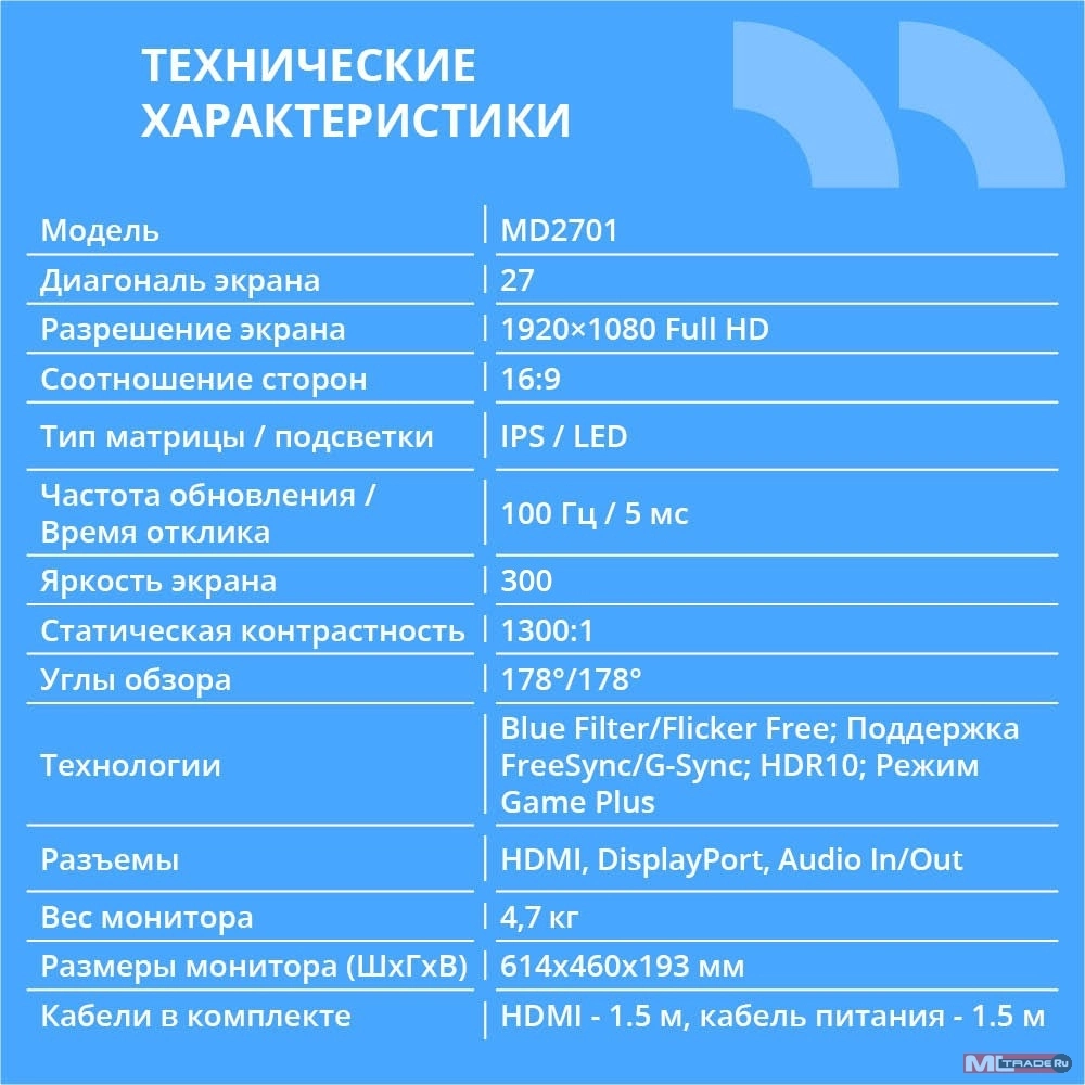 178гр 2560x1440 75Hz FreeSync DP Quad HD 2K (1440p) 4кг