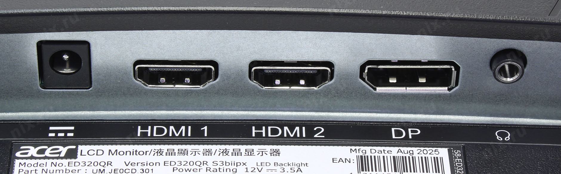 Монитор LCD Acer 31.5" Nitro ED320QRS3biipx (VA Curved 1500R 1920x1080 180Hz 1ms 16:9 300cd 2xHDMI2.0 DisplayPort1.4 AudioOut FreeSync(Premium) HDR10) [UM.JE0EE.301]